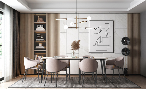 现代客厅餐厅,沙发,餐桌,电视柜,吊灯,装饰画