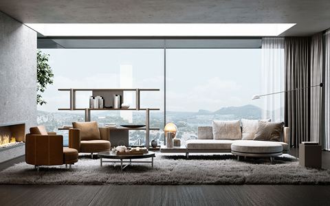 米洛提 Minotti 现代弧形转角客厅,沙发茶几