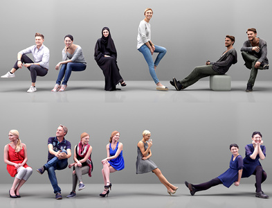 现代坐姿青年男女人物,坐着的人物美女