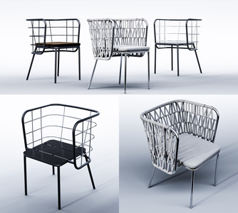现代工业风户外藤编休闲椅,椅子,户外椅,铁丝椅