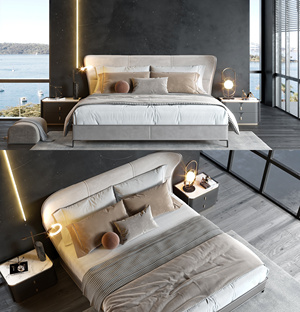 简欧式皮革双人床