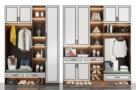 新中式入户鞋柜,衣物,包包,饰品摆件,