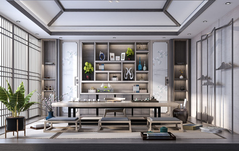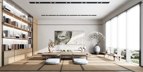 新中式日式榻榻米书房茶室