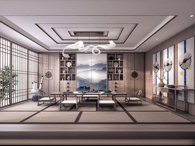 新中式日式榻榻米茶室茶室