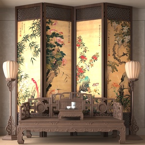 中式古典实木红木家具罗汉床,宫灯,屏风