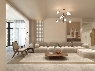 06侘寂风客厅餐厅,沙发茶几