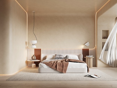 奶油风,卧室双人床