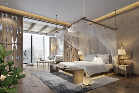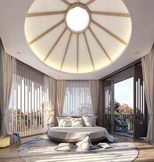 现代东南亚圆形卧室,圆形床,阳台摇椅