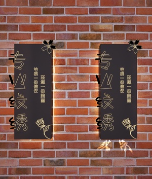 工业风铁艺广告牌 漏光字 发光字纹绣店招牌店