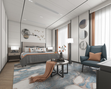 新中式卧室,双人床