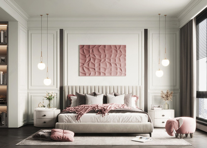 轻奢卧室,双人床,床头柜