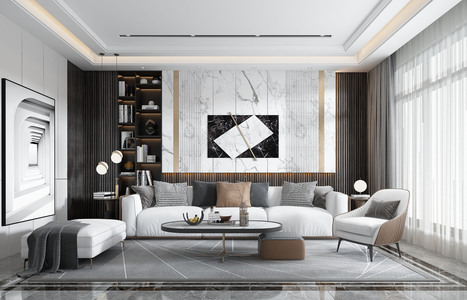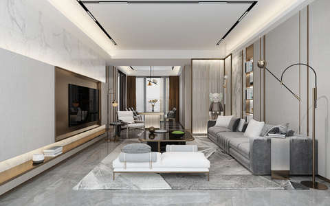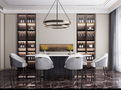 现代轻奢新中式餐厅,餐桌椅子酒柜