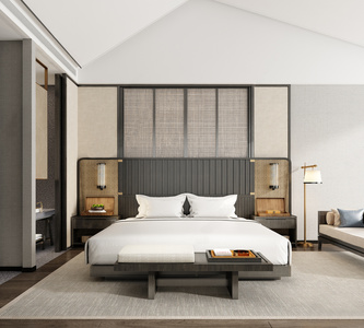 新中式酒店客房3D模型