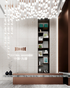 新中式酒店会所办公大堂大厅前台接待,服务台门厅