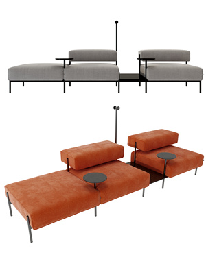 现代布艺多人沙发,