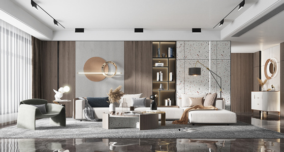 现代客厅,布艺,转角沙发单人沙发,落地灯玄关柜装饰边柜