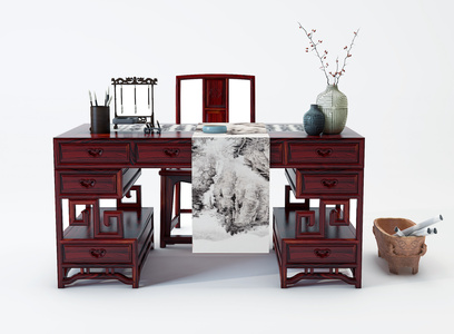 中式古典红木实木,书桌椅组合