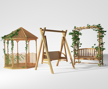 现代实木户外凉亭秋千