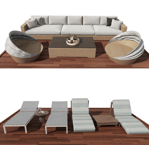 现代户外藤编沙发.躺椅组合