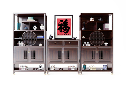 新中式红木茶柜边柜