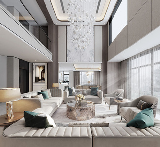 现代别墅轻奢客餐厅,水晶吊灯
