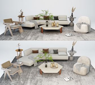 现代沙发转角沙发茶几