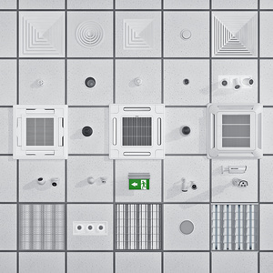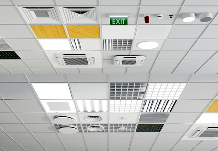 现代铝扣板天花板,格栅灯,换气扇,喷淋烟感,