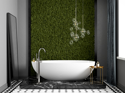 现代浴缸,穿衣镜,吊灯组合