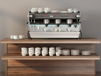 现代咖啡机,咖啡杯,餐盘