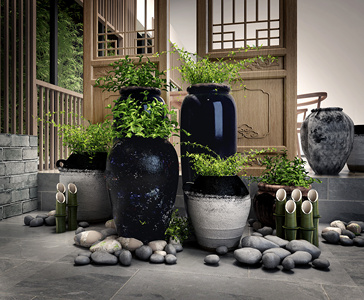 现代陶罐盆栽