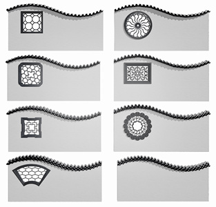 中式古建窗花山墙,院墙