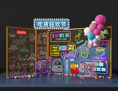 工业风美陈_霓虹灯_装饰灯彩灯气球购物车