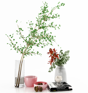 现代绿植,花瓶,雕塑,水果,果盘,摆件