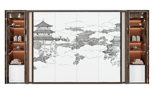 新中式电视背景墙,
