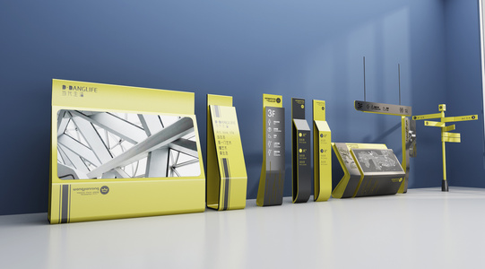 黄灰色现代艺术馆商场标牌,指示牌,道路引导牌