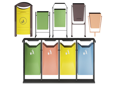 现代户外黄色,绿色蓝色公共垃圾桶,垃圾箱