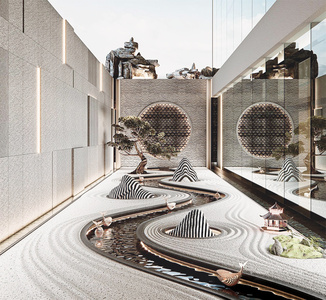 新中式山水园林水景