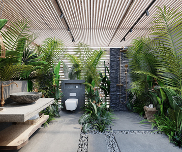 现代绿植植物景观植物绿植花草生态卫生间