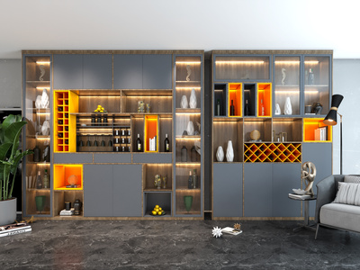 03现代酒柜,置物柜,多功能柜,储物柜,装饰柜,绿植,单椅,单人沙发,现代金属落地灯,边几角几,绿植