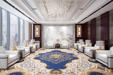 新中式贵宾接待室,沙发水晶吸顶灯