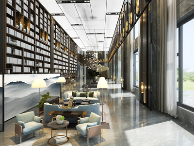新中式酒店会所大堂,大厅,前厅接待服务台