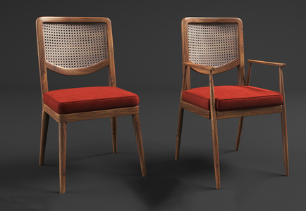 现代新中式日式实木藤编,编织椅子餐椅休闲椅