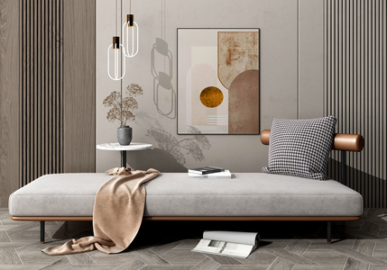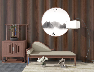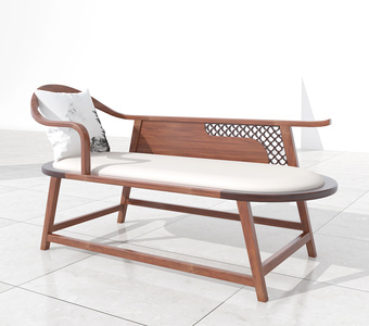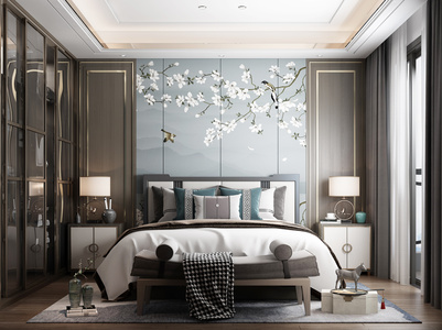 新中式卧室,双人床,床头柜,床尾凳,床尾榻,