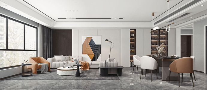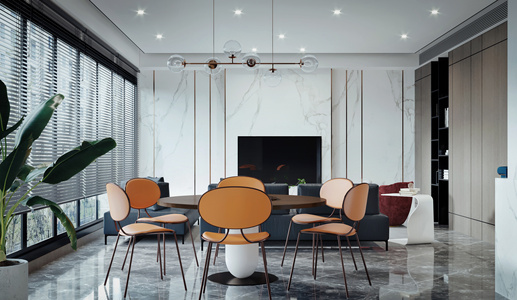 现代轻奢客餐厅,餐桌椅,