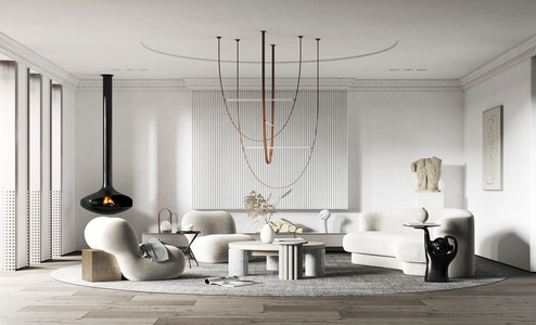 现代客厅,异形弧形沙发,单人沙发,雕塑边几茶几