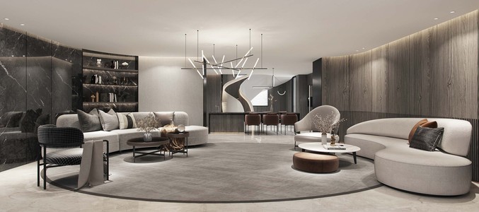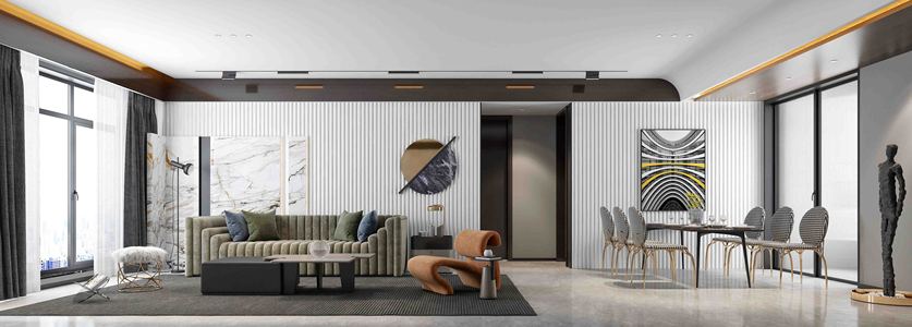 极简轻奢客厅餐厅沙发餐桌椅,沙发茶几