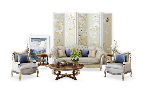 lg-08古典欧式法式雕花皮革沙发茶几灯几