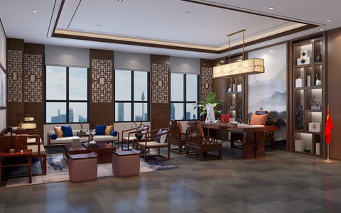 中式古典红木沙发书桌老板台家具,总经理,领导,办公室