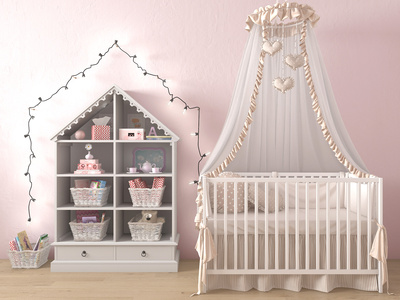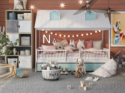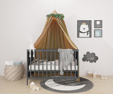 Z19-0716现代儿童床婴儿床,床蔓挂画
