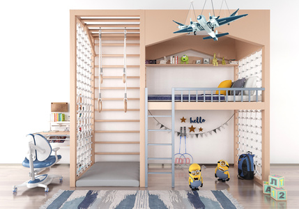 Z22-0716现代欧式儿童上下床,上下铺,地毯机器人滑板车